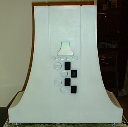 The front view of the fujicase with fuji emblem lit, switches and displays installed.